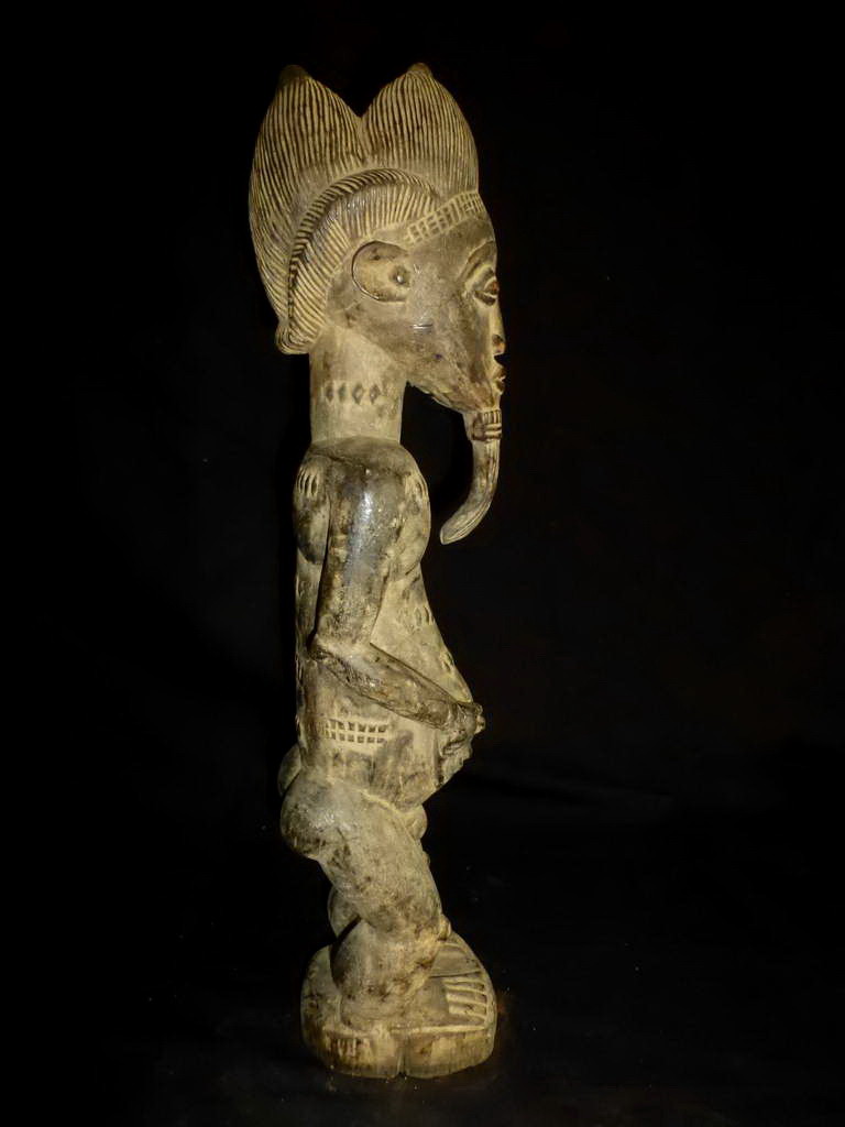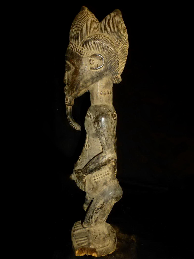 Statue ancêtre Baoulé - Légende Titre de l'objet : Statue ancêtre Baoulé - Légende Description : Statue d'ancêtre Baoulé - hauteur : 57 cm - belle patine sombre et brillante - pièce de collection - Elle était plantée dans le sol à l'époque coloniale - Fétiche de centre du village - le pied est rongé par le temps passé et les ruissellements des pluies - belle pièce de collection - Durant la période pré-électorale, investissez dans des produits culturels issus des collections du Musée d'Art primitifs de Cannes. Produits culturels dont la valeur varie et dépendra de la politique culturelle du futur président de la république.