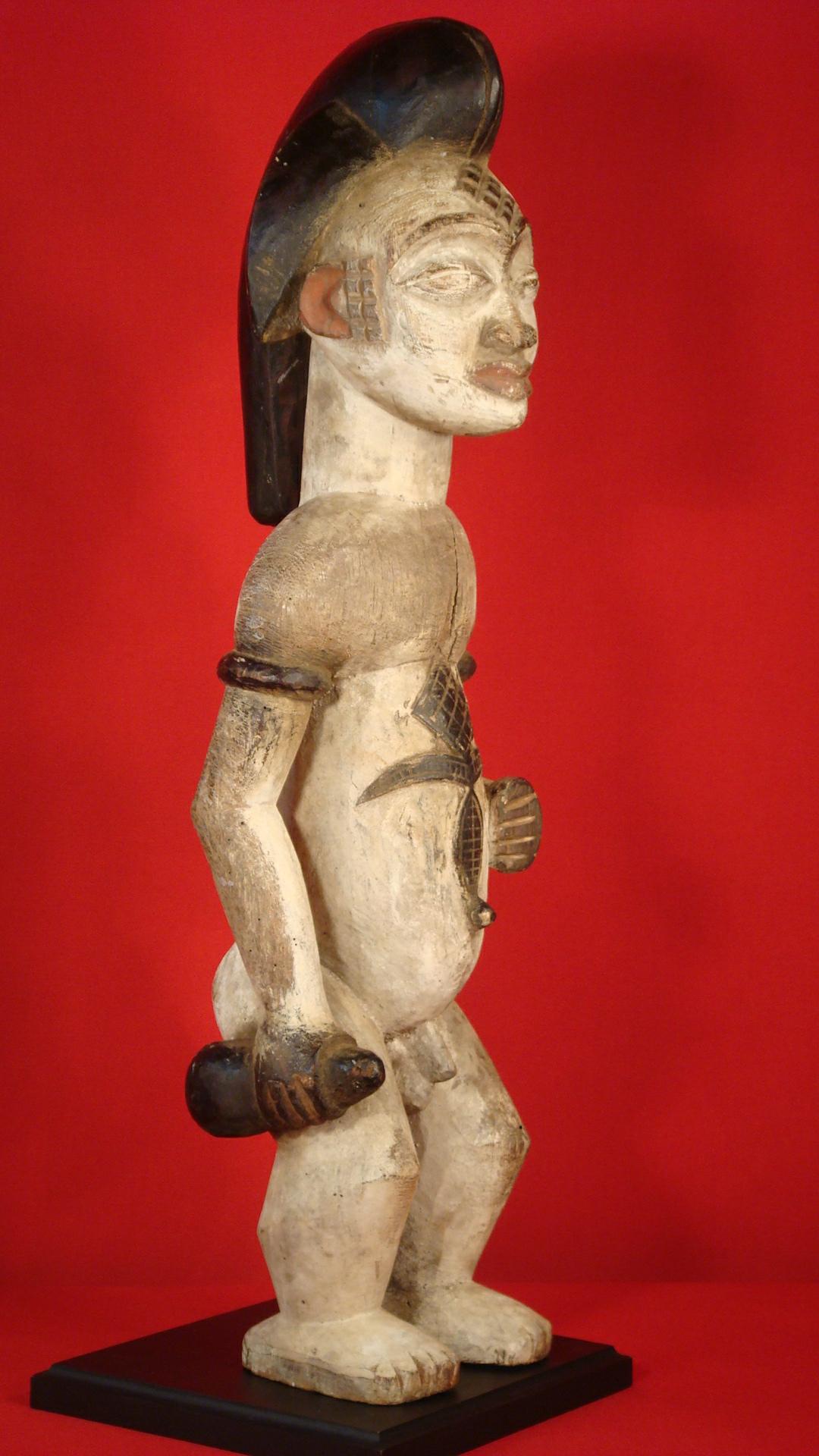 Grande Statue Punu du Gabon Titre de l'objet : Grande Statue Punu du Gabon Description : Magnifique statue Punu du Gabon - hauteur : 60 cm - beau fétiche ancien - poids : 2,1oo kg - bois dur et sec. statue ancienne sur laquelle on distingue une attaque de fente parcourant le ventre - qualité musée - Durant la période pré-électorale, investissez dans des produits culturels issus des collections du Musée d'Art primitifs de Cannes. Produits culturels dont la valeur varie et dépendra de la politique culturelle Matière : 499 - Réf annonce n° 351 Voir toutes les photos jusqu'en bas de la page