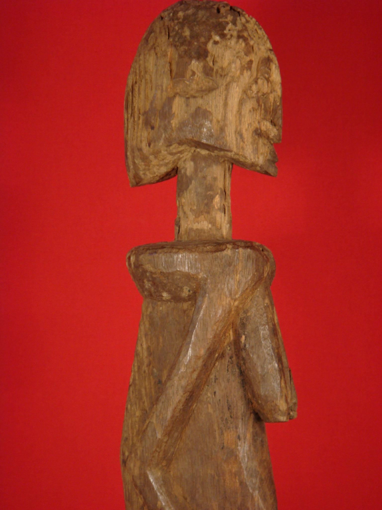 Statue ethnie Dogon du Mali - XIXè Titre de l'objet : Statue ethnie Dogon du Mali - XIXè Description : Statue rustique ethnie Dogon du Mali - bois un peu fossilisé - hauteur : 62 cm - objet de fouilles avec une belle patine d'usage - poids : 1,6oo Kg - pièce de collection très recherchée - Durant la période pré-électorale, investissez dans des produits culturels issus des collections du Musée d'Art primitifs de Cannes. Produits culturels dont la valeur varie et dépendra de la politique culturelle du futur président de la république.