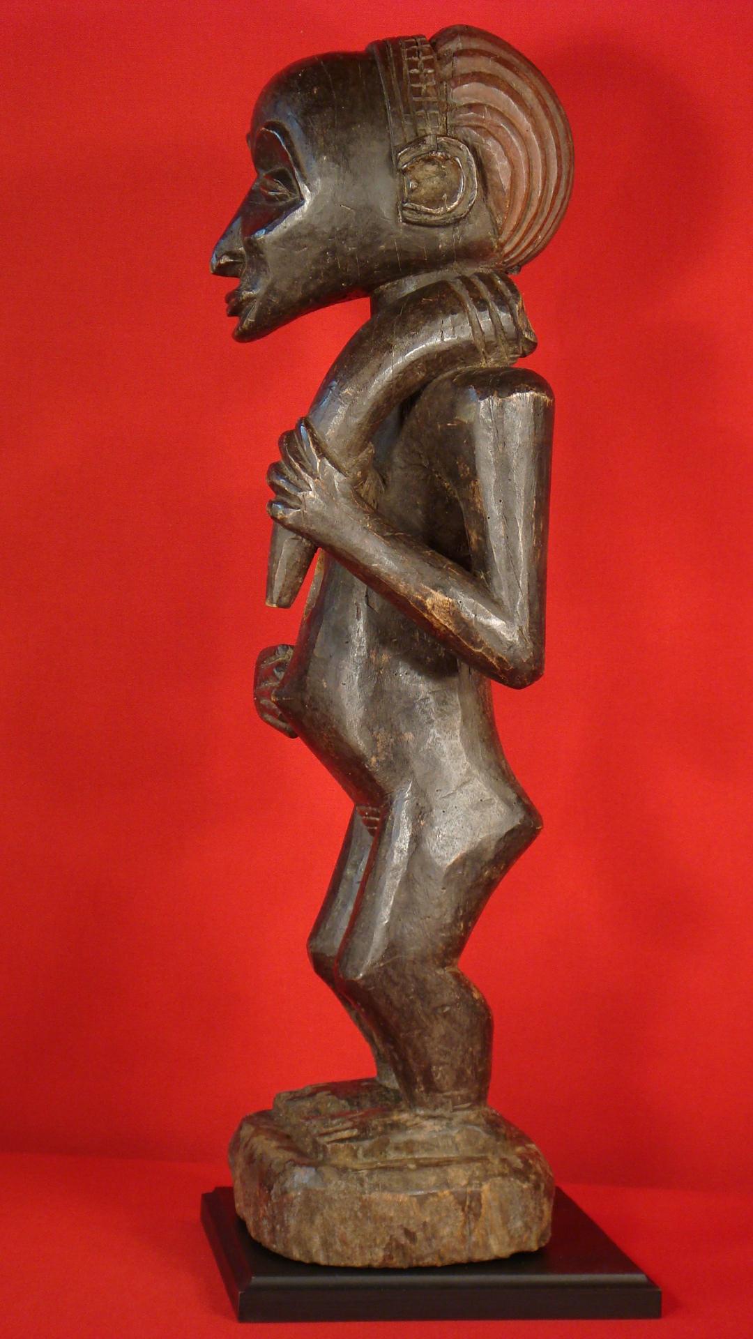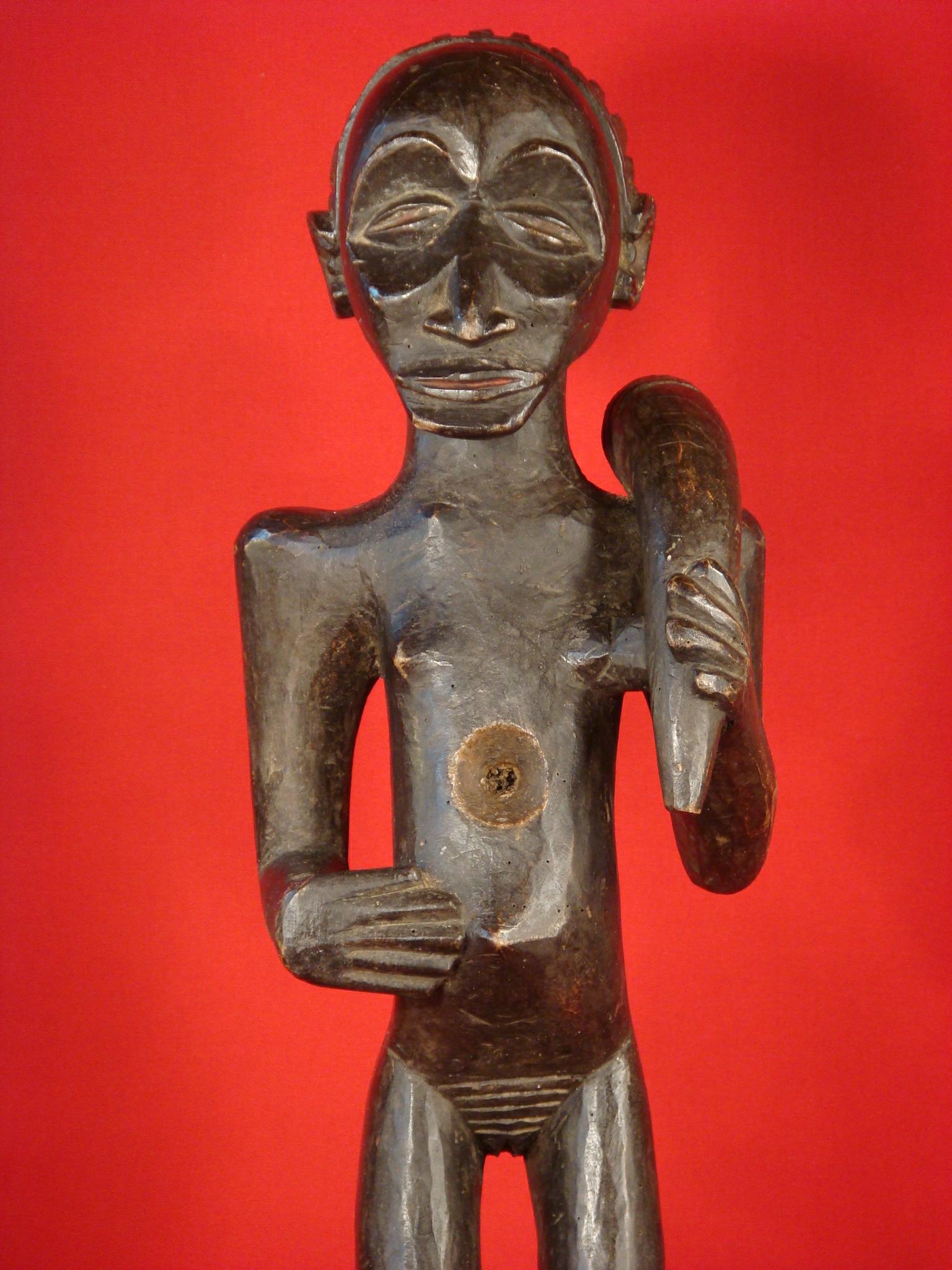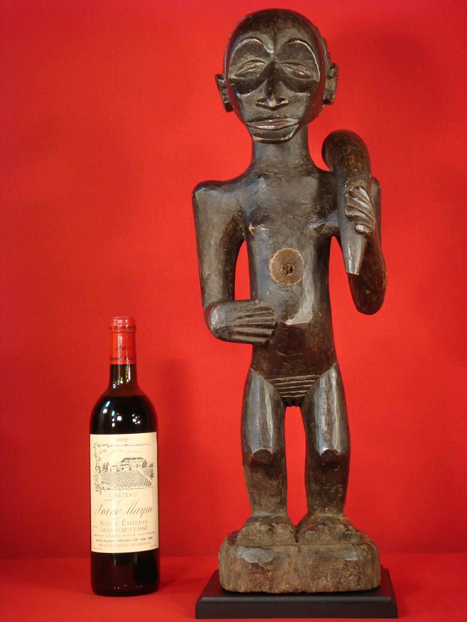 Statue Babembé du Congo à Kolwezi Titre de l'objet : Statue Babembé du Congo à Kolwezi Description : Beauté féroce et sophistication pour cette statue de communauté du Congo Belge - hauteur : 61 cm - Pièce ancienne de l'ethnie Babembé, en bon état de conservation - poids : 2,4oo Kg - statue rapportée vers les années 40 par un ancien directeur de l'Union Minière du Katanga - plantée au milieu du village, elle servait lors des cérémonies propitiatoires à caractère magique - représentait un chef de village Matière : 1.500 - Réf annonce n° 372 Voir toutes les photos jusqu'en bas de la page
