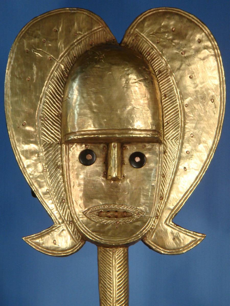 Authentique reliquaire funéraire Kota du Gabon Titre de l'objet : Authentique reliquaire funéraire Kota du Gabon Description : Arts primitifs - ancien reliquaire kota funéraire du Gabon - hauteur : 57 cm - il était utilisé à l'époque lors des funérailles chez les Fang - totem tombal constitué d'une âme en bois dur recouverte de plaques de cuivre doré, de laiton et de clous en bronze - cet objet ethnique rapporté d'Afrique dans les années 50 représente une figure de personnage mythique - il avait pour fonction d'accompagner le défunt qui rejoignait le monde des ancêtres - bon état général, avec des petites imperfections d'ancienneté - poids : 1,4oo Kg - antiquité africaine surprenante avec des petits défauts dus au temps passé sous terre - très belle pièce pour collectionneur Prix : 2.000 € - Réf annonce n° 340 Pour commander, cliquez ici